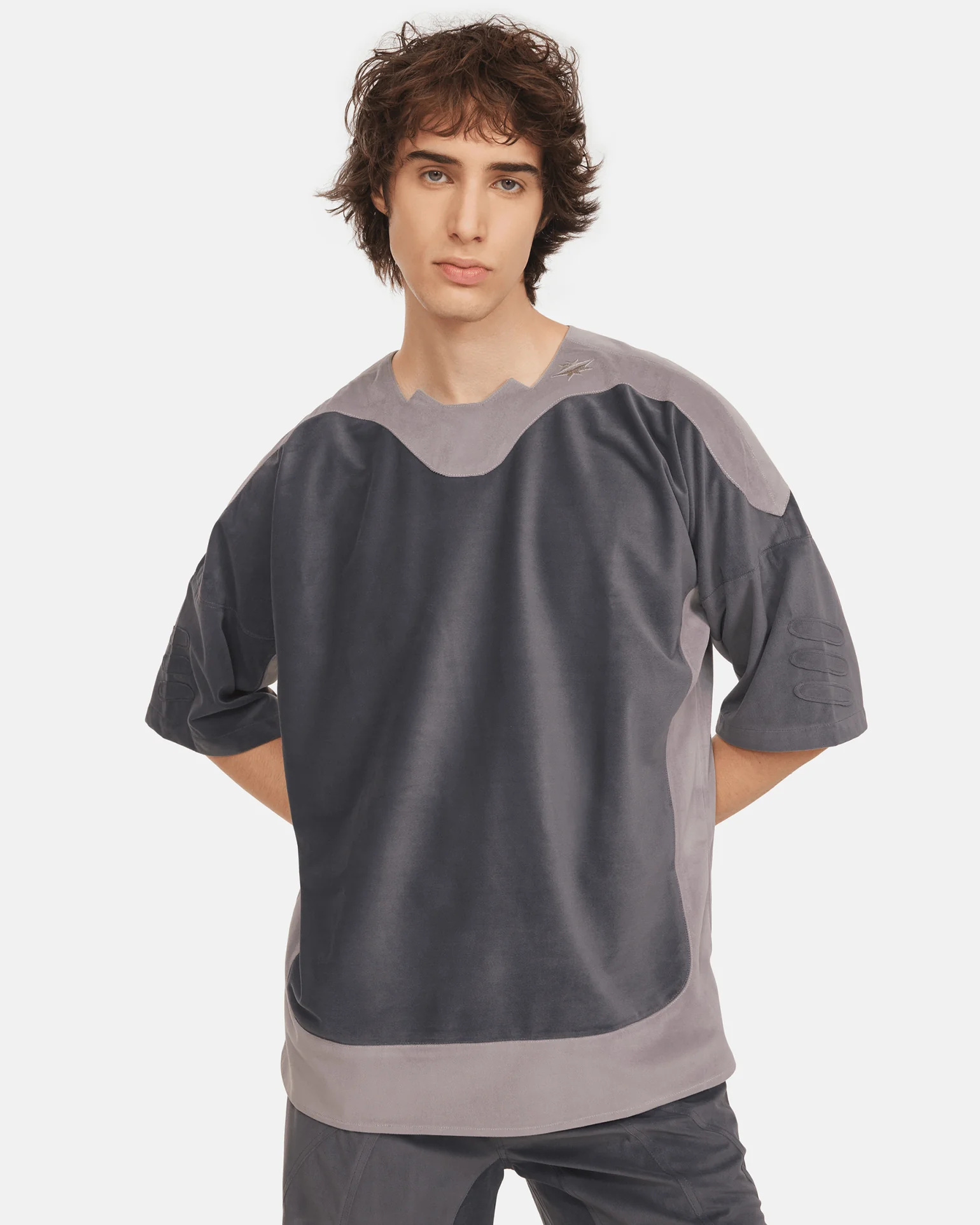 In the Four-Dimensional Prison, “Timefall,” uniforms MinusOne and MinusTwo embody a structured discipline. The soft, muted color palette—dual shades of gray—mimic the perpetually obscure environment, where light and time intersect in unpredictable patterns.
